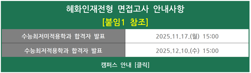 | Á¦¸ñ | [ÇÕ°ÝÀÚ ¹ßÇ¥] 2026Çг⵵ ½ÅÀÔÇÐ ¼ö½Ã¸ðÁý ÇýÈÀÎÀçÀüÇü 1´Ü°è ÇÕ°ÝÀÚ ¹ßÇ¥(15:00 ¹ßÇ¥) |