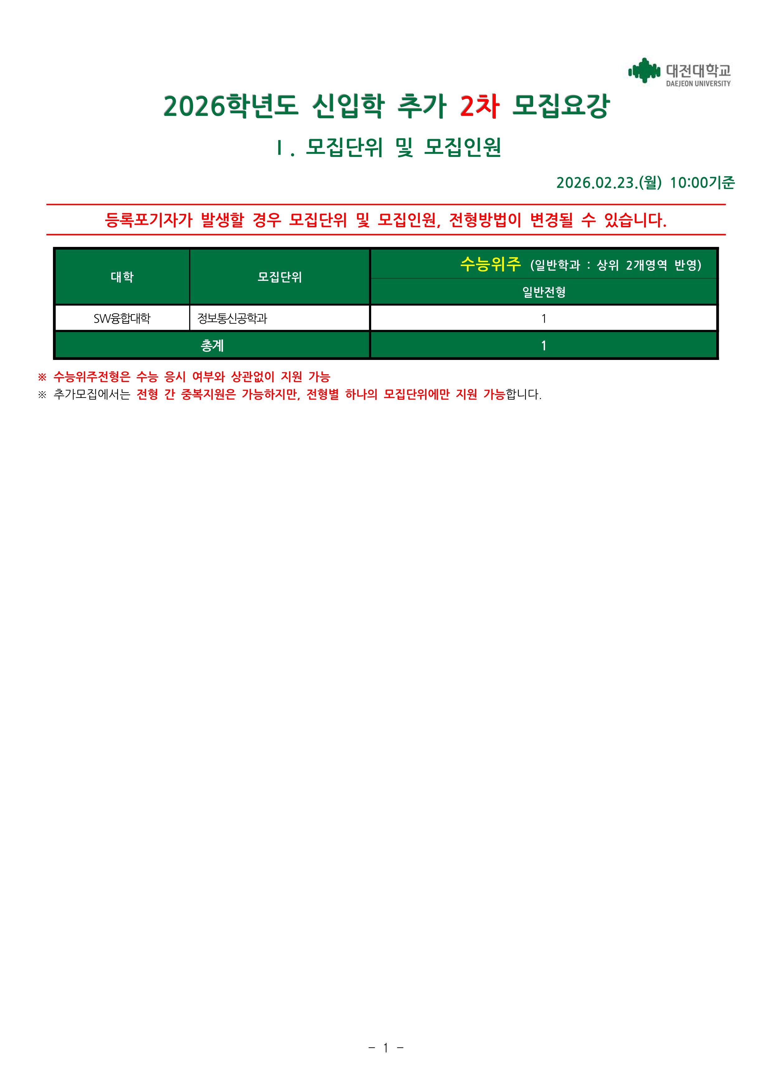 | Á¦¸ñ | [¸ðÁý¿ä°] 2026Çг⵵ ½ÅÀÔÇÐ Ãß°¡¸ðÁý (2Â÷) ¸ðÁý¿ä° |