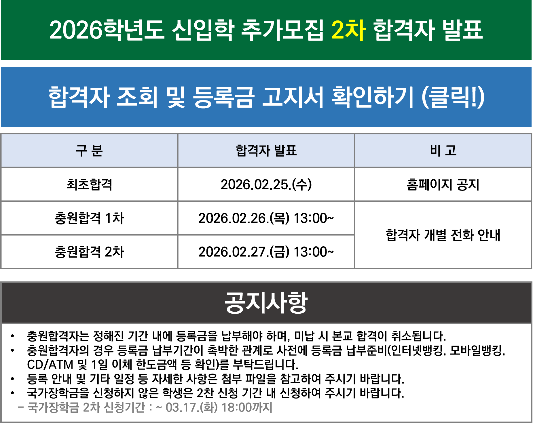 | Á¦¸ñ | [ÇÕ°ÝÀÚ¹ßÇ¥] 2026Çг⵵ ½ÅÀÔÇÐ Ãß°¡¸ðÁý(2Â÷) ÇÕ°ÝÀÚ ¹ßÇ¥ |